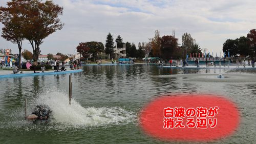 一番良いのは水車の起す白波や泡が消える辺り。この辺は水流が丁度よい強さで魚も溜まっています。